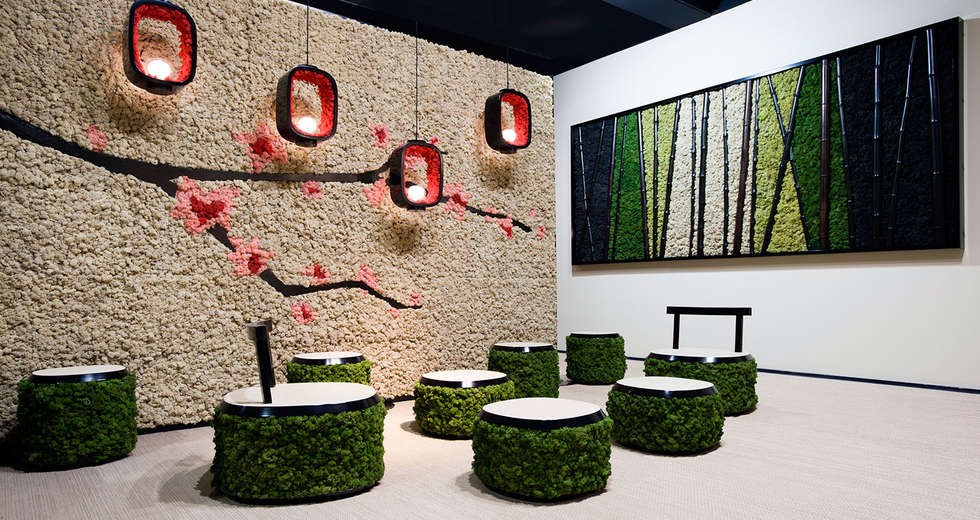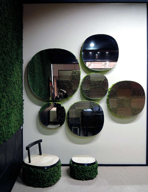 Abbiamo allestito uno stand al Salone del Mobile Milano 2014 incentrando l'attenzione sul nostro prodotto brevettato MOSSwall®, sistema progettato per realizzare giardini verticali naturali indoor. Grazie i 22 olori disponibili è stato disegnato un ramo di pesco sulla parete autoportante centrale, i particolari secchi circondati da MOSSwall® riprendono le sedute della collezione MOSSdesign 2014. La parete di destra invece è caratterizzata da un grande quadro realizzato con elementi naturali quali lichene stabilizzato MOSSwall® e tronchi di bamboo.