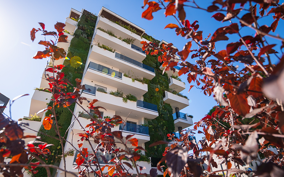 Un mix perfetto che si integra nel design ricercato dell'ambiente, l'accostamento della pavimentazione in cemento e la natura del nostro prodotto MOSSwall® caratterizzano ancora di più l'ingresso.