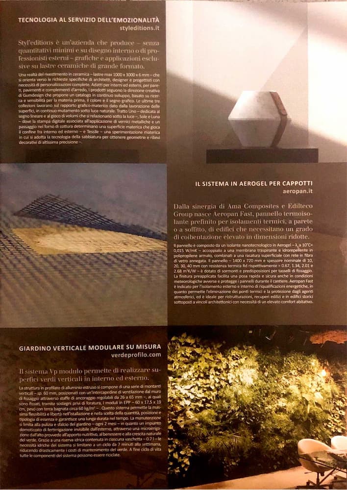 In questo numero siamo presenti nella sezione dedicata ai rivestimenti per pareti con il nostro sistema VP MODULO per Giardini Verticali indoor e outdoor.