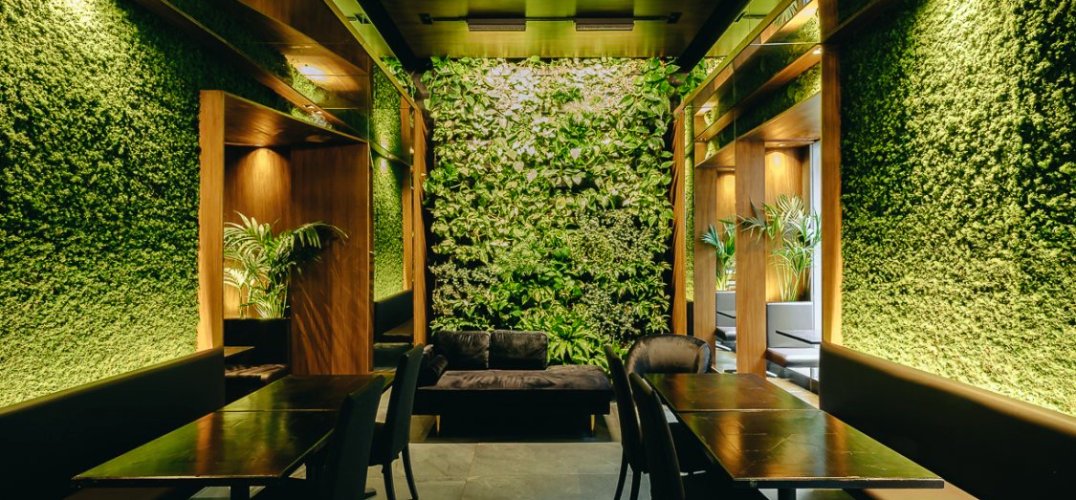Indoor vertical gardens that maintain their impeccable appearance without light, water, and care? It is possible with MOSSwall®, our patented and innovative system composed of stabilized moss and lichen. With MOSSwall®, you can create immediate impressive indoor wall coverings in many natural colors.
