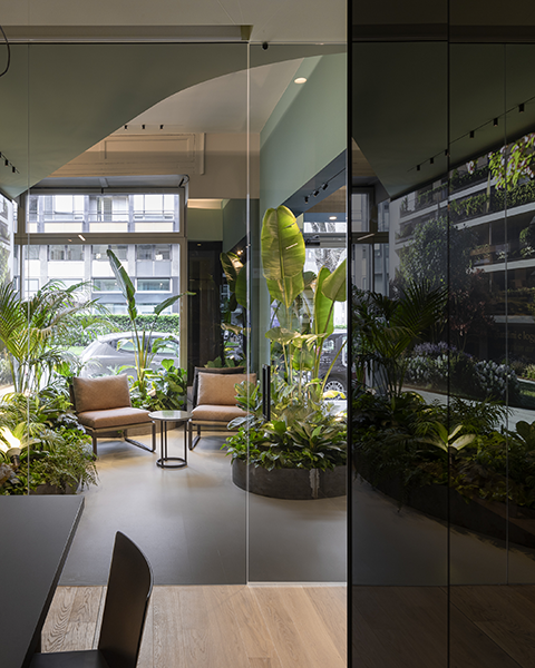 Planters with real plants and a MOSSwall® feature wall were added to the reception area.