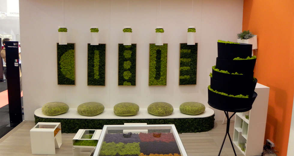 Parigi, Settembre 2013 uno stand studiato per presentare MOSSwall®, l'originale rivestimento naturale per indoor brevettato da Verde Profilo® e la collezioni di arredi realizzata da Verde Profilo® in collaborazione con numerosi giovani designer.