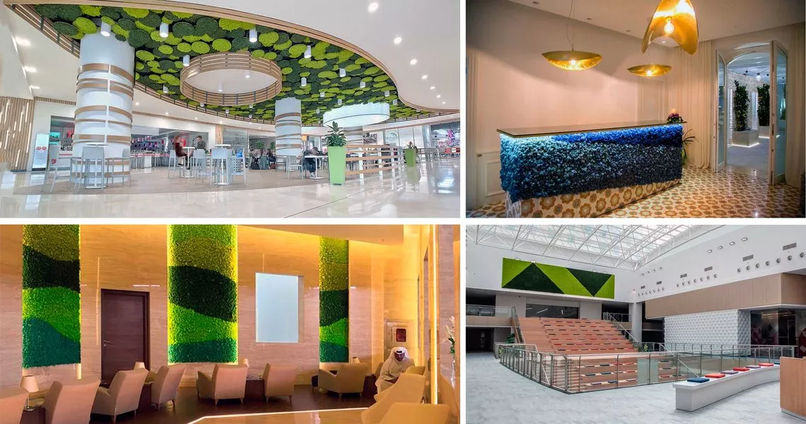 Public environments such as Airports, Theaters, Congress Halls, Shopping Centers and Halls of Hotels are some examples ofenvironments where we can usually find green scenographies that enrich the design.