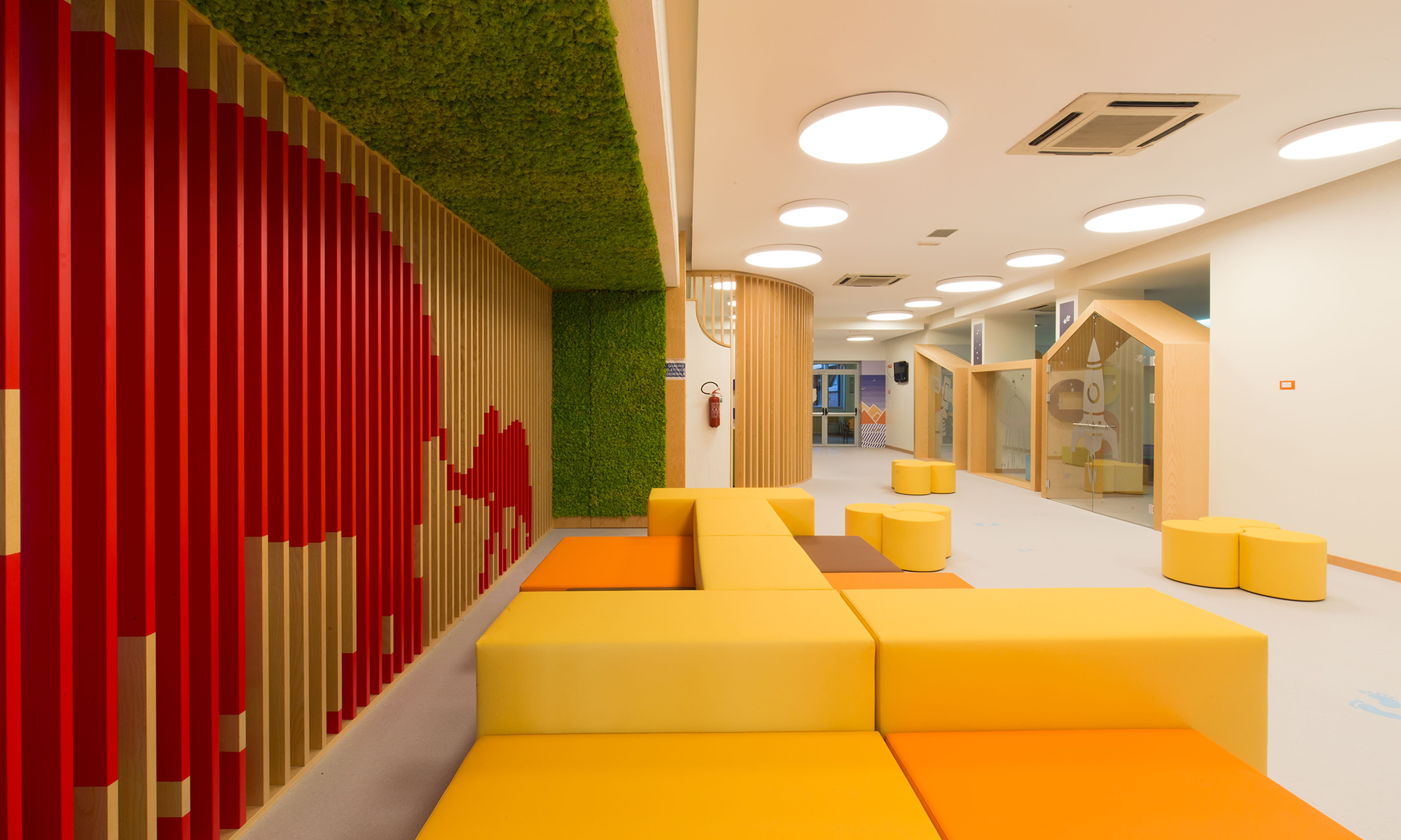 The project, designed by Principio attivo Architecture Group, included the redevelopment of the pediatric oncohematology day hospital.