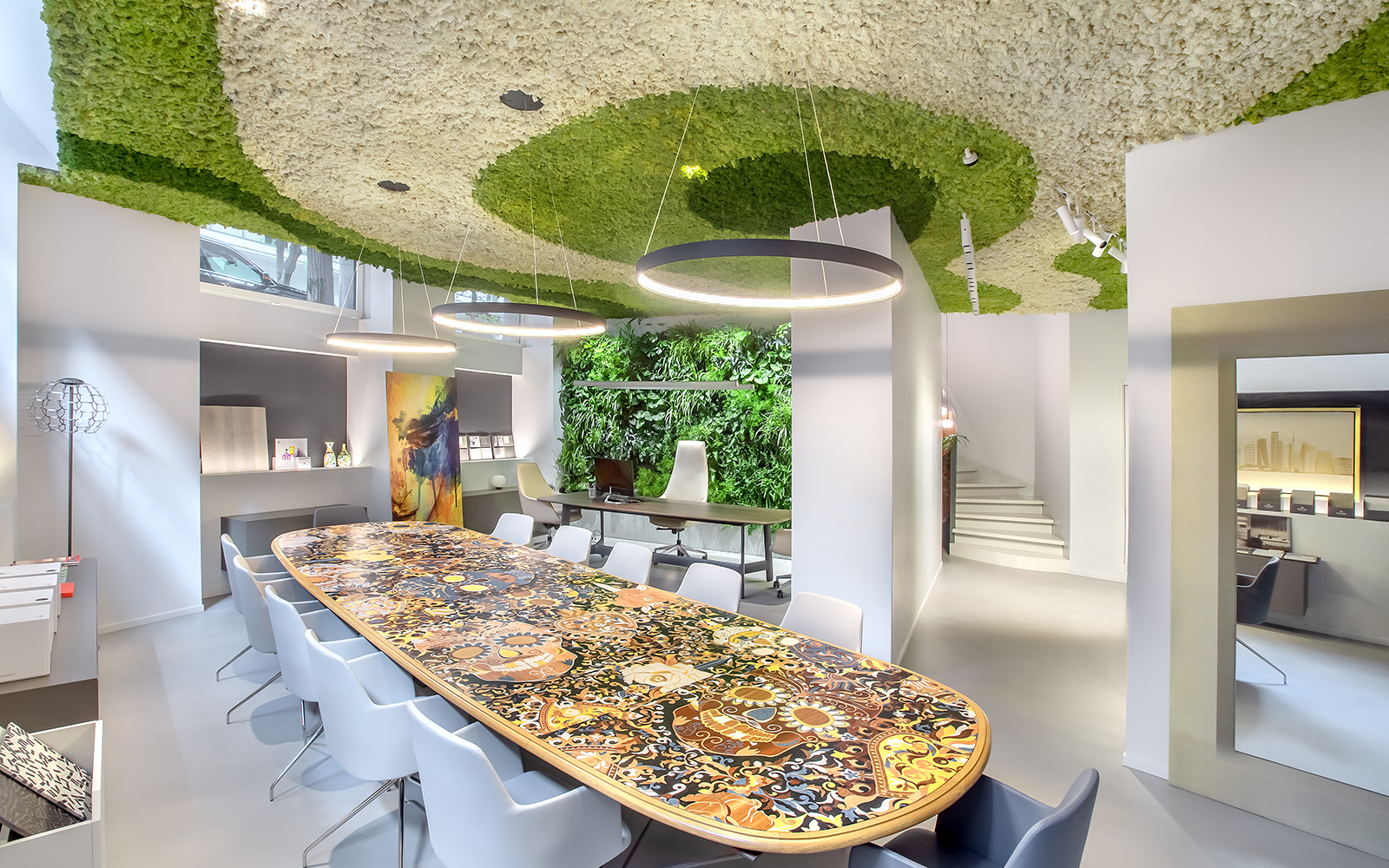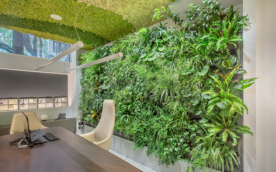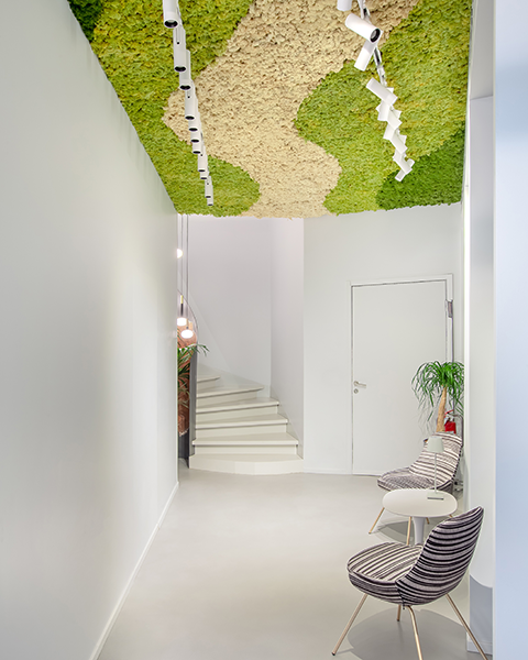 In the Tempini showroom, we created a bespoke green installation. On the lower floor, our Easy Single Side and MOSSwall® Acoustic (MW07) systems are showcased. The installations combine functionality and aesthetic impact, enhancing the exhibition space. Each setup was designed to highlight the versatility and potential of our systems. The green elements integrate nature, design, and acoustic comfort where needed. These solutions allow visitors to directly experience the materials and applications. The result is an immersive showroom where greenery and technology blend in perfect harmony.