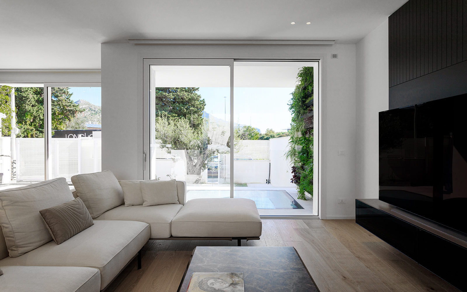 In the renovation of this villa in Mondello, VERTICALgarden walls were introduced to create continuity between indoor and outdoor spaces and to bring nature into the living areas.