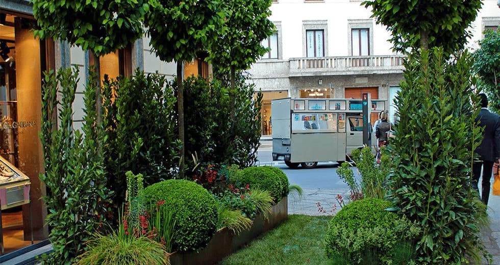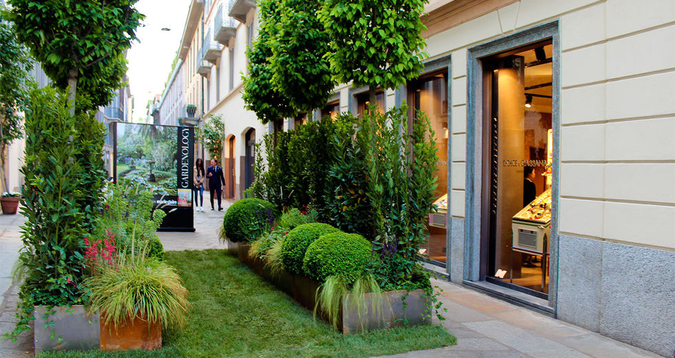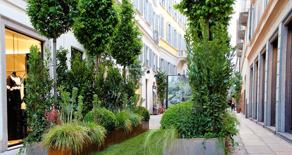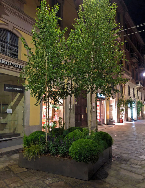 Verde Profilo in qualità di sponsor del verde ha progettato e realizzato due aiuole lungo via spiga. Un mix di graminacee, carpini e betulle per inverdire la famosa via Milanese
