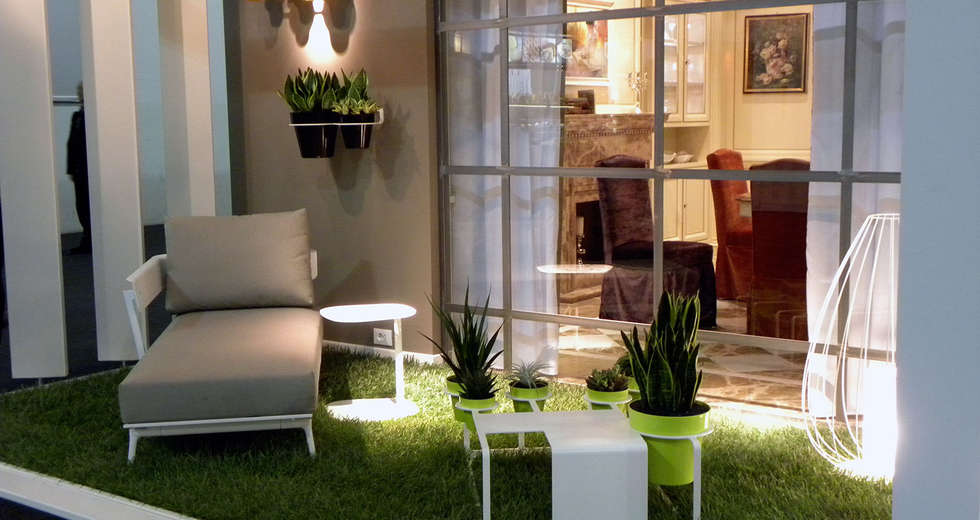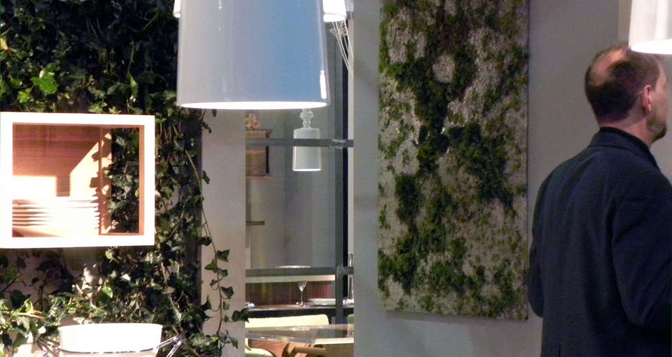 L’allstimento effetuato da Verde Profilo® conisteva nell’inserimento di una paret verde con essenze rampicanti che si coniugassero con una cucina 100% bio, a partire dai rivestimenti murali, ai pensili fino alla pavimentazione in vero prato.