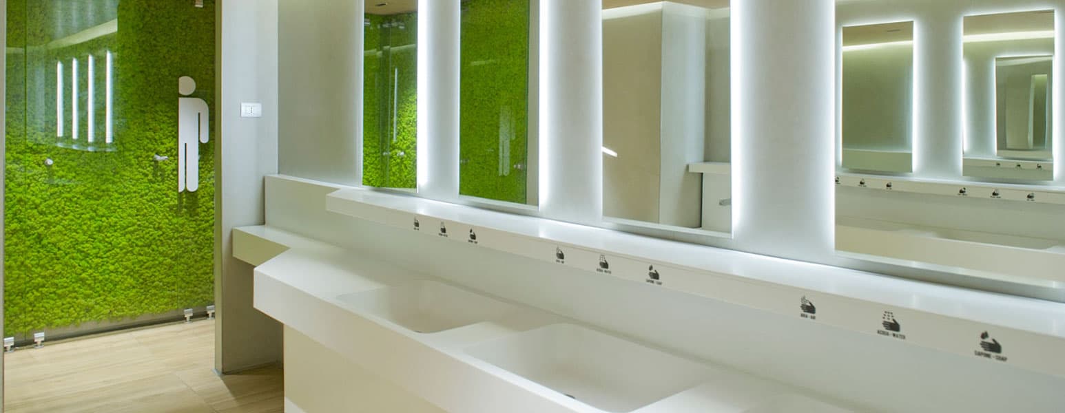 Verde Profilo® in collaborazione con Sistema Ufficio SRL di Roma ha realizzato per ADR - Aeroporti di Roma due pareti MOSSwall® nella colorazione Wasabi55.