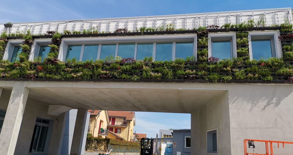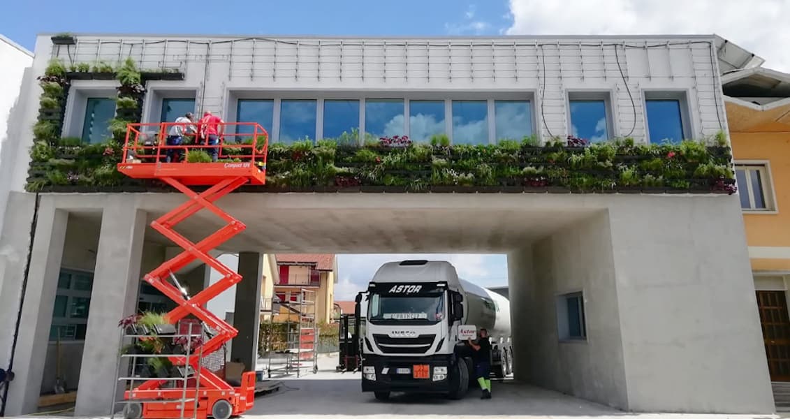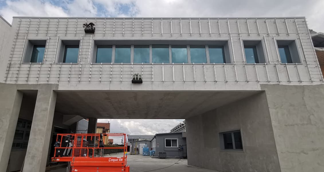 Una prima parte della facciata delle Sede Asiago Food a Padova è stata completata.