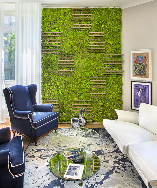 L'inserimento di una parete di MOSSwall® negli spazi interni è una soluzione in grado di aggiungere fascino, eleganza e carattere agli ambienti, come in questo progetto.