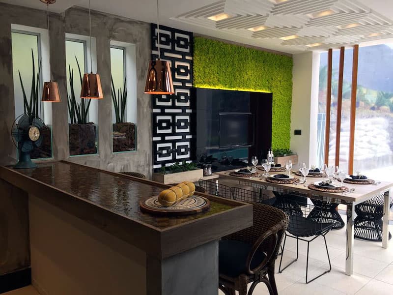 Il progetto prevedeva una cornice naturale nella zona soggiorno con il Sistema originale MOSSwall®.