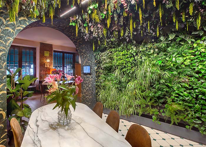 Entrando in questo Cocktail Bar si nota subito come la natura si è integrata negli ambienti grazie ai Giardini Verticali, una soluzione ideale per arredare con stile gli ambienti indoor.