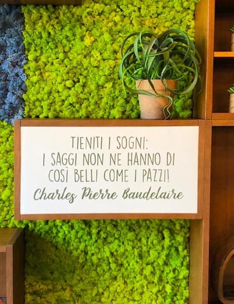Il design del locale, realizzato da Studio Novo, ha previsto l'inserimento di pannelli MOSSwall® in diverse colorazioni, installati a parete e a soffitto.
