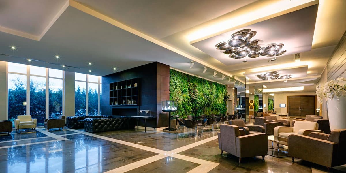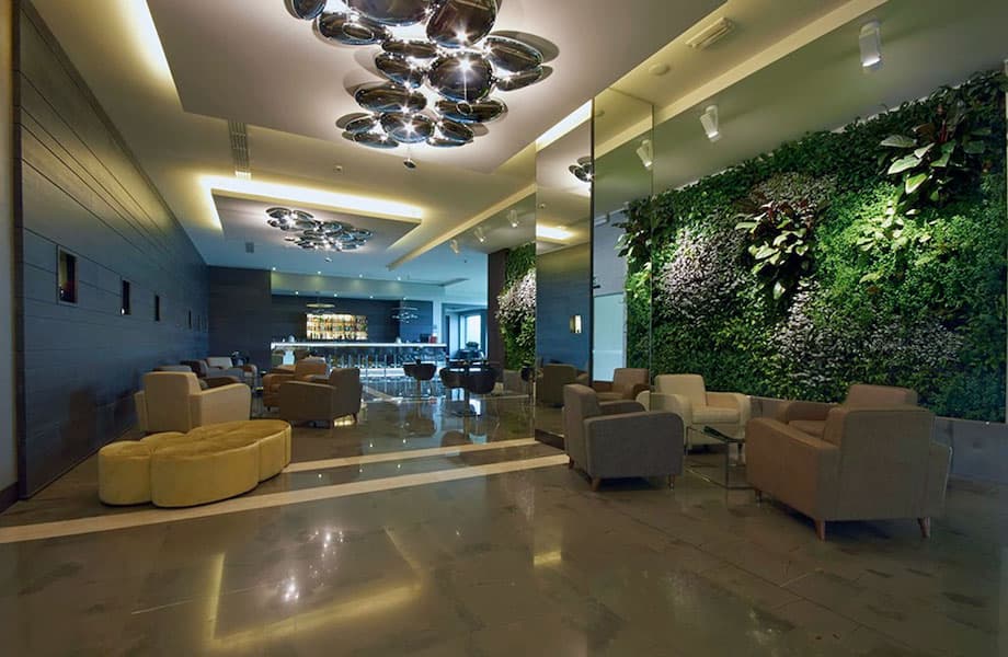 Verde Profilo per Klima Hotel Milano ha realizzato un Giardino Verticale indoor. La parete è ubicata nella zona relax dell'hotel.