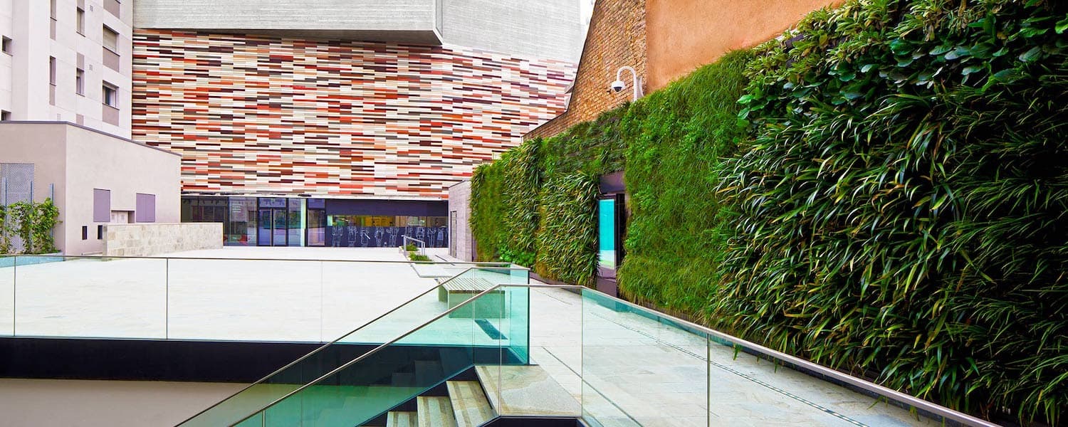 Il layout botanico della parete ha previsto un design rigido e geometrico reso possibile grazie alle differenti essenze accuratamente selezionate, riprendendo anche il design generale del nuovo edificio che costituisce il Museo M9. Scopri di più sui giardini verticali.