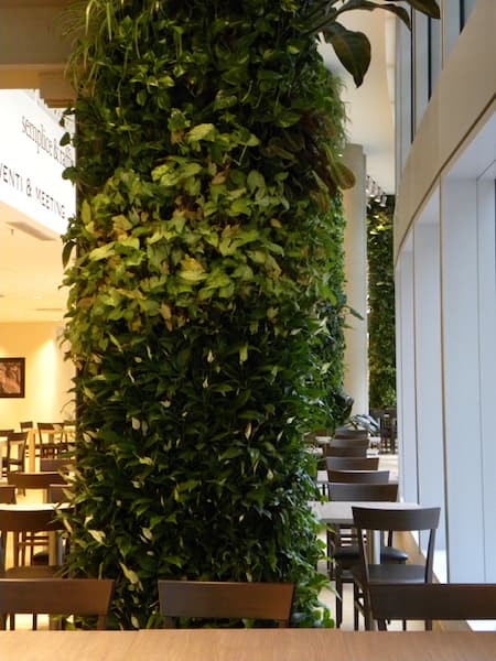 Sono infatti uniche le colonne rivestite con giardino verticale per il risorante Pappa Food a Milano, con oltre 8 metri di altezza ospitano più di 4800 essenze.
