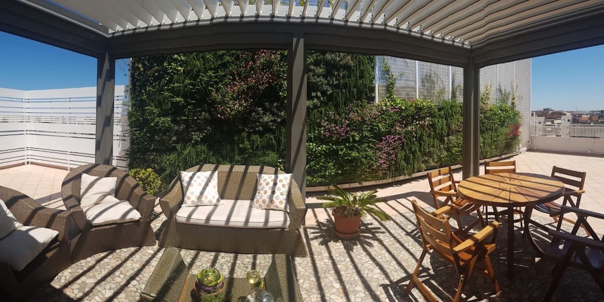 Per una bella terrazza pugliese abbiamo progettato questa parete di verde verticale; un'ottima soluzione con il duplice scopo di mascherare l'antiestetica griglia metallica e portare la natura all'interno del progetto.